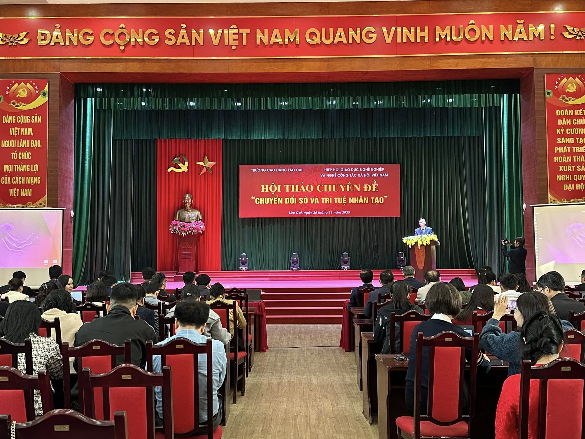 Sáng 26/11, Trường Cao đẳng Lào Cai tổ chức Hội thảo chuyên đề “Chuyển đổi số và trí tuệ nhân tạo”. Tham gia hội thảo có hơn 200 đại biểu là chuyên gia, lãnh đạo các sở, ngành có liên quan; Hiệp hội Giáo dục nghề nghiệp và Nghề công tác xã hội; lãnh đạo, nhà giáo và sinh viên ngành công nghệ thông tin của Trường Cao đẳng Lào Cai, Trường Cao đẳng Nghề Yên Bái, Trường Cao đẳng Lai Châu…